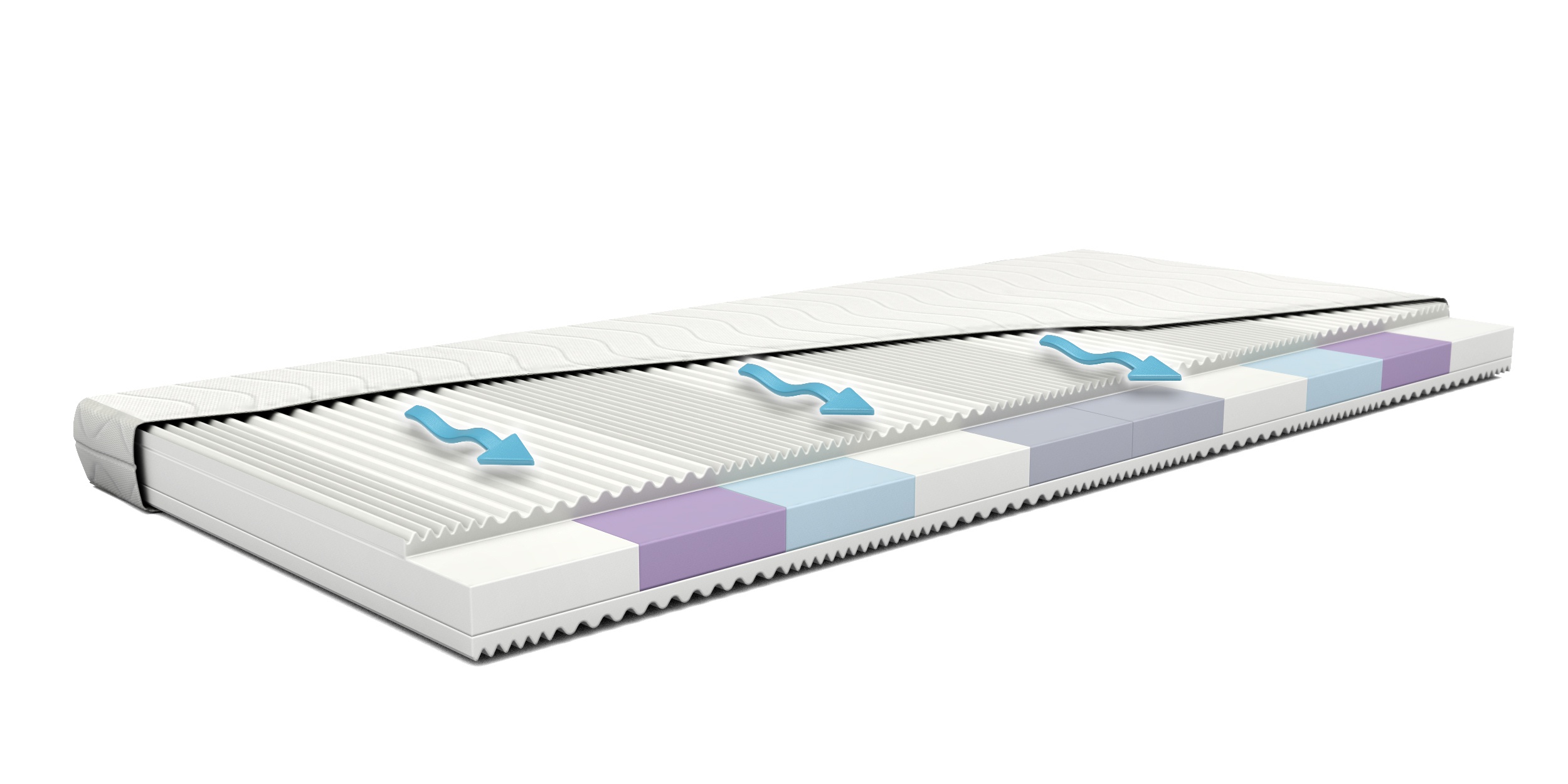 Obě strany této pěnovné matrace jsou středně měkké, vzhledem k použití vysoce kvalitní matracové pěny se zvlněným střihem, který vytváří 9-zón tvrdosti. Jádro matrace je vyrobeno ze čtyř druhů matracové pěny uložené tak, že vytváží také 9 barevných zón tvrdosti. Tento technologický postup nám umožnil vyrobit matraci se systémem dvojího zónování, která se dokonale přizpůsobuje anatomické struktuře těla. Navíc matrace disponuje sysémem cirkulace vzduchu „StudioM”.