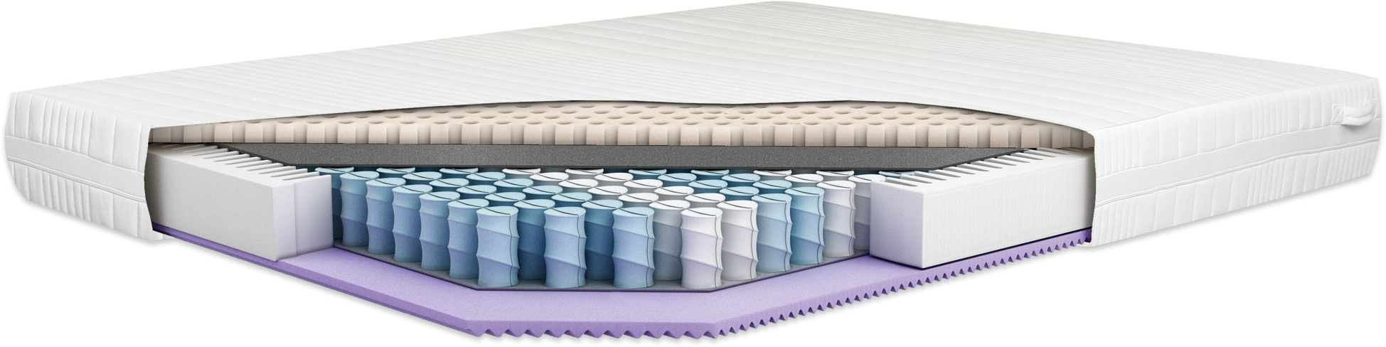 První strana matrace je středně měkká díky použitému materiálu z přírodního latexu, který zaručuje perfektní komfort v kterékoliv pozici během spánku. Mezi latexovou vrstvou a pružinami je speciálně separující, distanční textilní vrstva.