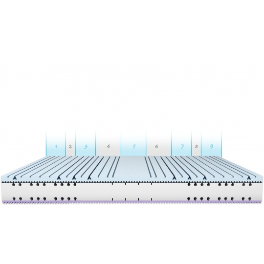První středně měkká strana byla vytvořena použitím vysoce elastické matracové pěny s řezy, které tvoří 9 zón tvrdosti. Toto provedení podporují zóny v jádru matrace. Zvlněný povrch vysoce pružné matracové pěny tvoří systém cirkulace vzduchu STUDIO-M ".