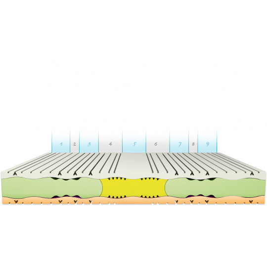 | Materiál | Studená pěna + Visco pěna + PUR pěna |