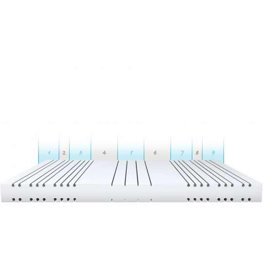 První měkká strana je vyrobena z vysoce elastické matracové pěny s příčnými řezy tvořícími 9 zón tvrdosti matrace.