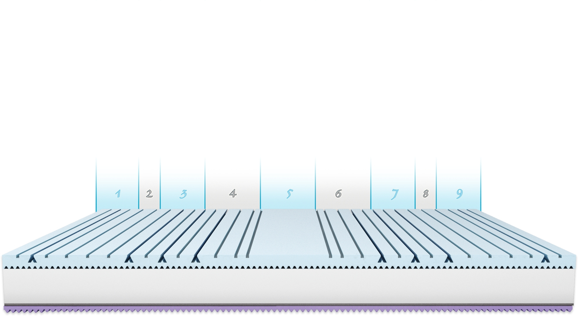První středně měkká strana je vyrobena z vysoce pružné matracové pěny s unikátním zvlněným střihem, který se kombinaci s 9 zónovými taštíčkovými pružinami tvoří dvojitý zónový systém.